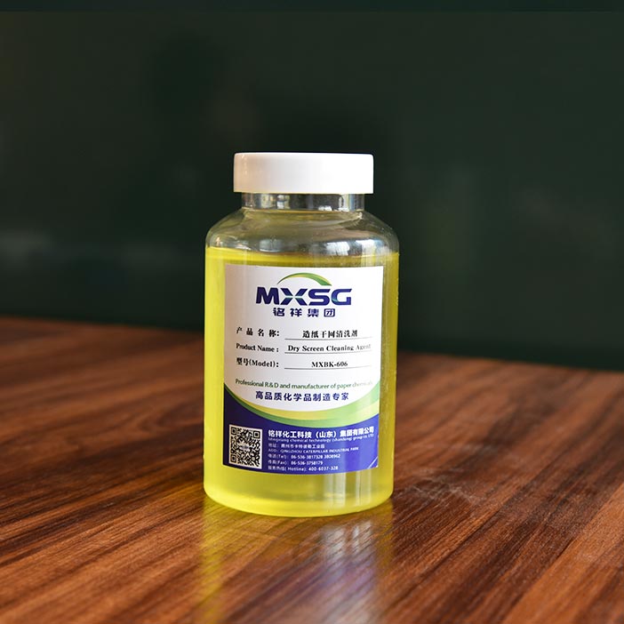 MXBK-606 is a kind of polymer made from advanced surfactant,penetrating agent,emulsion,anstatic agent,auxiliary detergents and etc.By using it,he stickies of dryer screen can be better penetrated and cleaned.It can be used during or after equipment operation.The permeability of dryer screen can be improved.The cleaning dryer parts operation can prolong the working time of dryer screen.The paper broken situation resulted from sticky dirt will be avoided greatly.