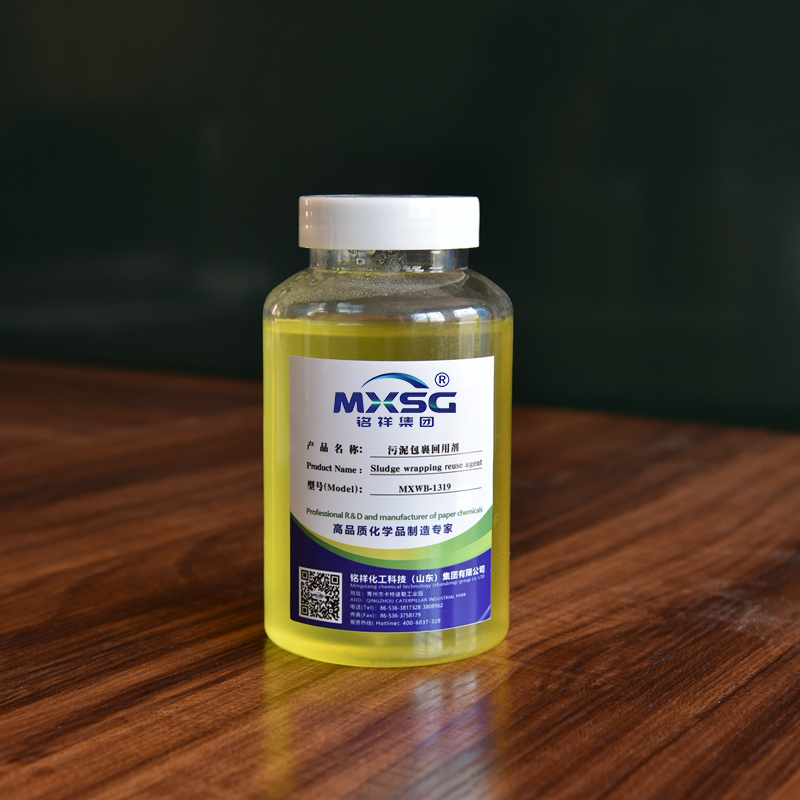 MXWB-1319污泥包裹回用劑是我公司生產(chǎn)的新 一代造紙污泥回用產(chǎn)品。本品在污泥添加的過程中,其橋鏈結(jié)構(gòu)使污泥產(chǎn)生高分子陽離子支鏈,與紙漿結(jié)合,吸附,反應后的陽離子絮狀物快速填補到粗纖維之間的縫隙內(nèi),讓它有較強的親和力,產(chǎn)生新的反應,增強了污泥和漿料的混合搭配,使污泥均勻地填充到漿料中,使紙頁的勻度得到了充分的改善,提高紙張的耐折耐破度和環(huán)壓強度,改善濾水性能,延長毛布使用壽命,提高了生產(chǎn)效率,減輕了污水處理的環(huán)保壓力。本產(chǎn)品適用于瓦楞紙、箱板紙、白板紙、??埖燃埛N。